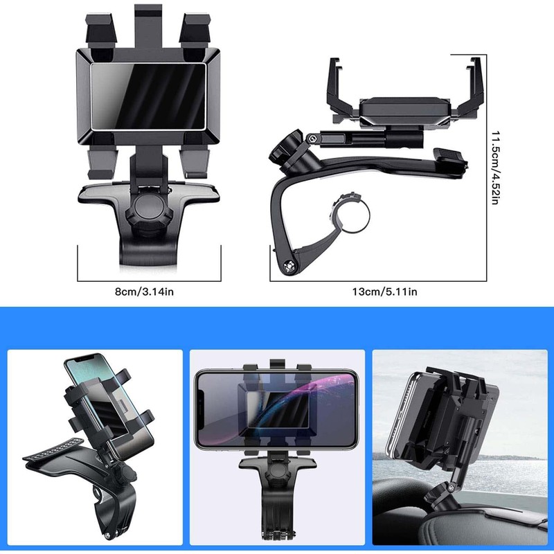 - 【Duradero y estable】El soporte para teléfono para automóvil adopta un diseño de hebilla de resorte doble de alta resistencia y anillo de tracción, que puede fijar fácilmente y con ahorro de mano de obra el soporte para teléfono en el tablero/parasol/espejo retrovisor en el automóvil. Almohadillas antideslizantes gruesas, que pueden proteger su teléfono y automóvil contra rasguños. Cuatro clips antideslizantes, protegen firme y firmemente el teléfono contra caídas, sin vibraciones ni ruido.