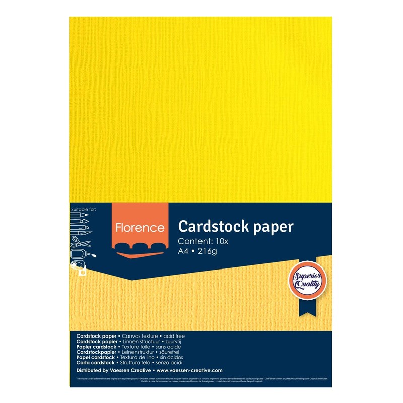 Vaessen Creative Florence Cardstock Paper Yellow 216gsm A4 Pack of 10 Texture for Scrapbooking, Card Making, Punching and Other Paper Crafts, 2928-005A4