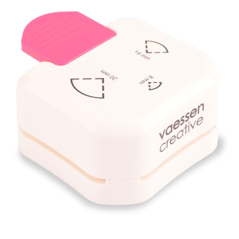 Vaessen Creative Paper, 3 in 1 Large Corner Punch, for DIY Projects, Scrapbooking and Card Making, Metal, White/Pink, 14,17,20mm