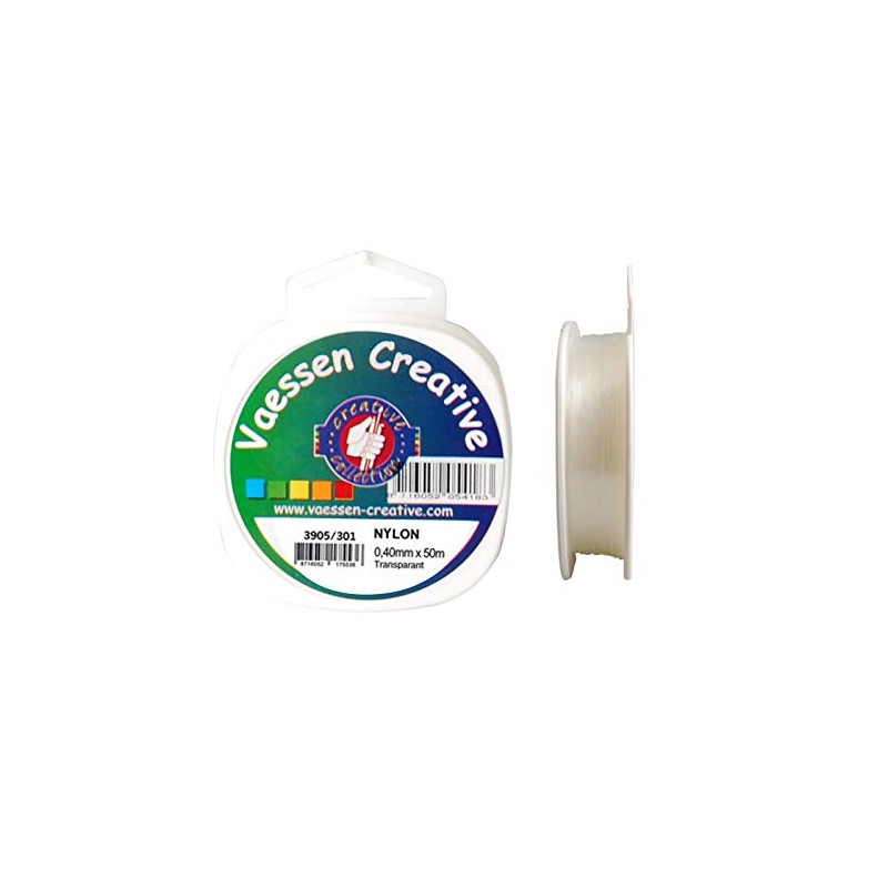 Vaessen Creative Transparent 0.4mm x 50m Spool Tear-Resistant Cord String Nylon Thread Fishing Line for Crafting, Sewing, Beading and Hanging Decorations