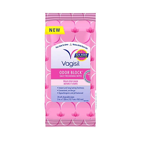 Vagisil Vagisil Odor Block Daily Freshening Wipes for Feminine Hygiene in Resealable Pouch, Gynecologist Tested & Hypoallergenic, 20 Wipes (Pack of 1)