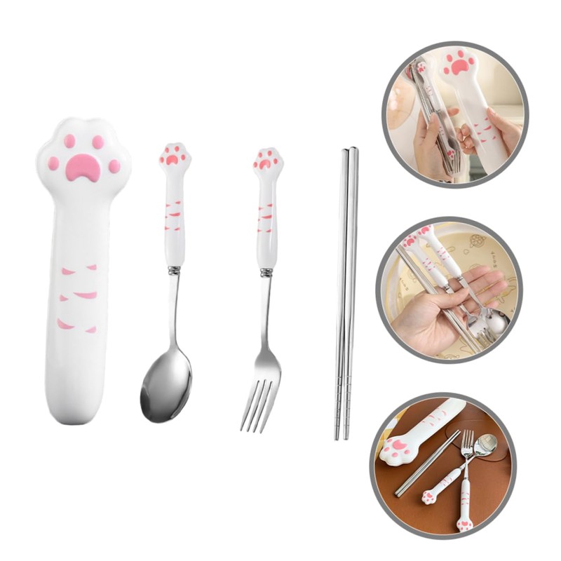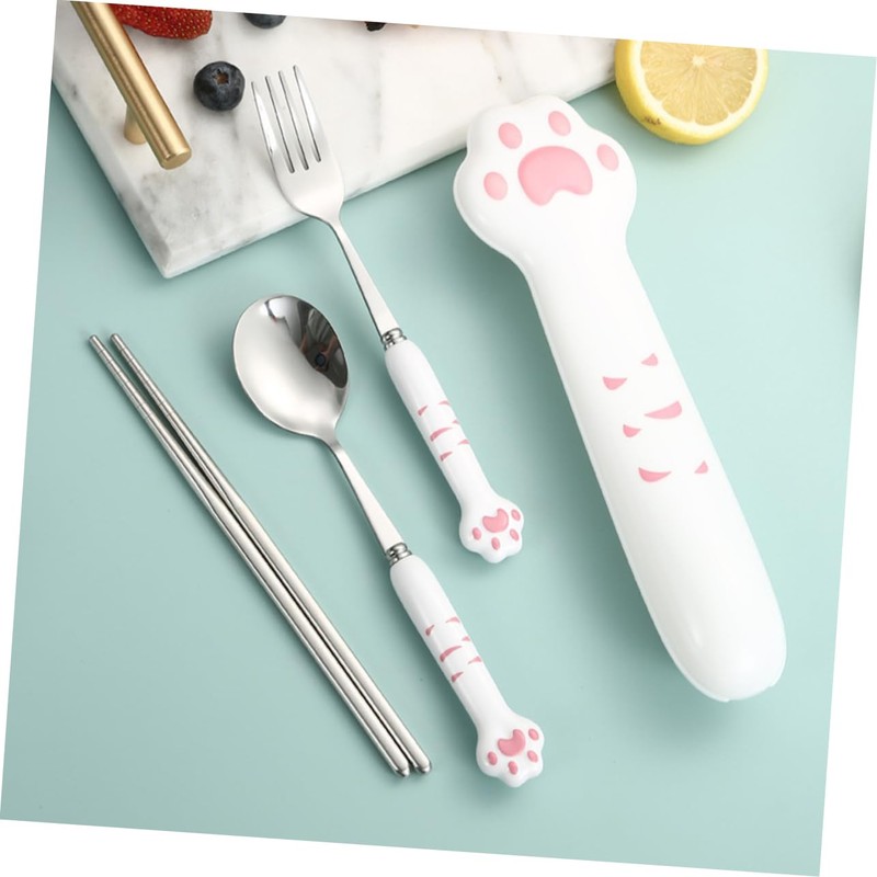 -Practical design: features a fork, spoon, chopsticks, and a storage case, providing all the necessary tools for a complete dining experience cute portable tableware spoon chopsticks