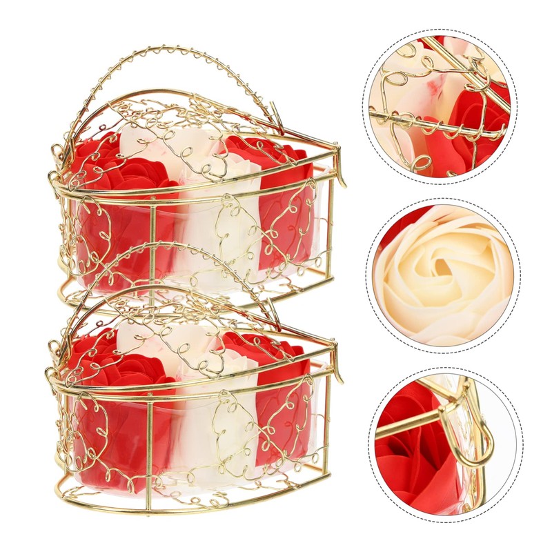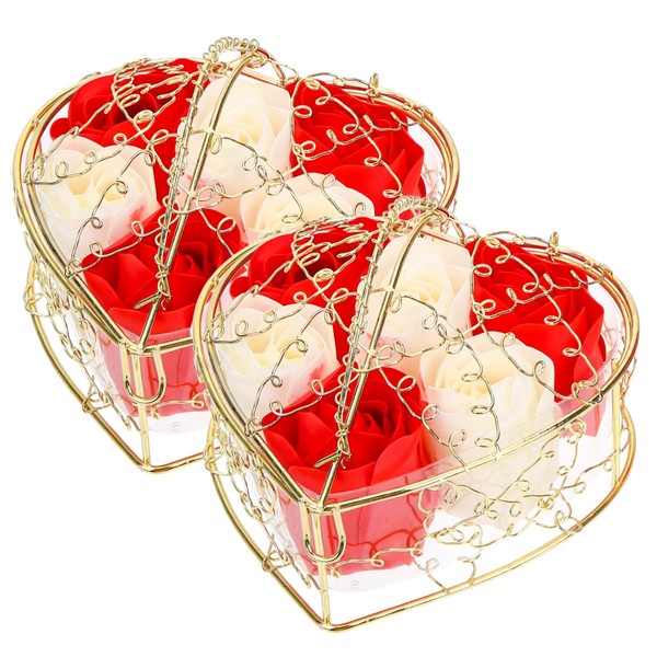 Vaguelly 2 Pack Simulated Rose Soap Ornaments Rose Petal Decorative Bath Soaps Set Present for Valentine's Day