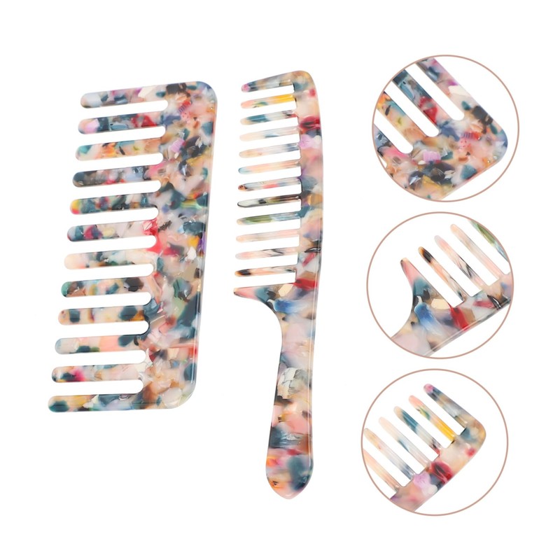 Vaguelly 2Pcs Wide Tooth Hair Comb Portable Static Comb for Men and Women Durable Acetate Material for Use for Home and Travel