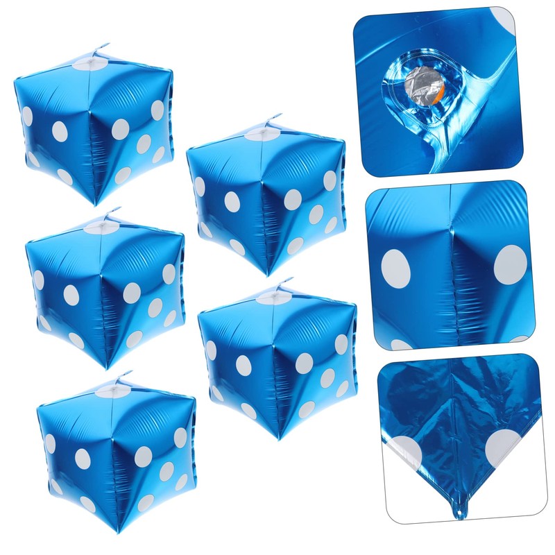 Vaguelly 5pcs Cube Dice Foil Balloons for Theme Party Decorations Aluminum Material for Photo Backgrounds Wall Ceiling Hanging Fun Celebration Props