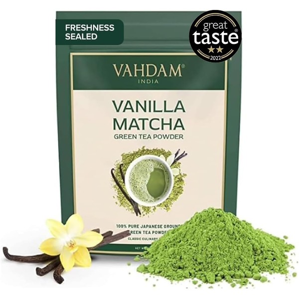 VAHDAM, Vanilla + Matcha Green Tea Powder (25g,12 Servings) SUPERFOODS Blend - Japanese Matcha Powder with 100% Natural Vanilla | Brew Delicious Vanilla Matcha Latte, Packaging may vary