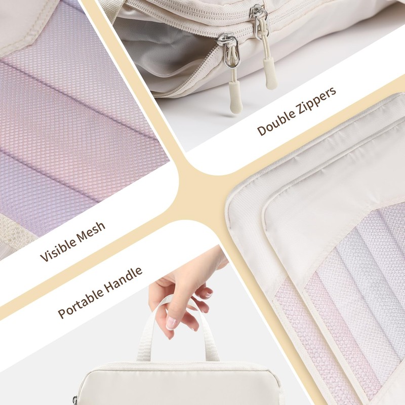 • Durable Fabric & Visible Mesh - Made from upgraded thickened nylon fabric, these packing cubes are sturdy, tear-resistant, and built to last through multiple trips. The thoughtful mesh panel design in the centre allows you to quickly see the contents of each cube without opening them
