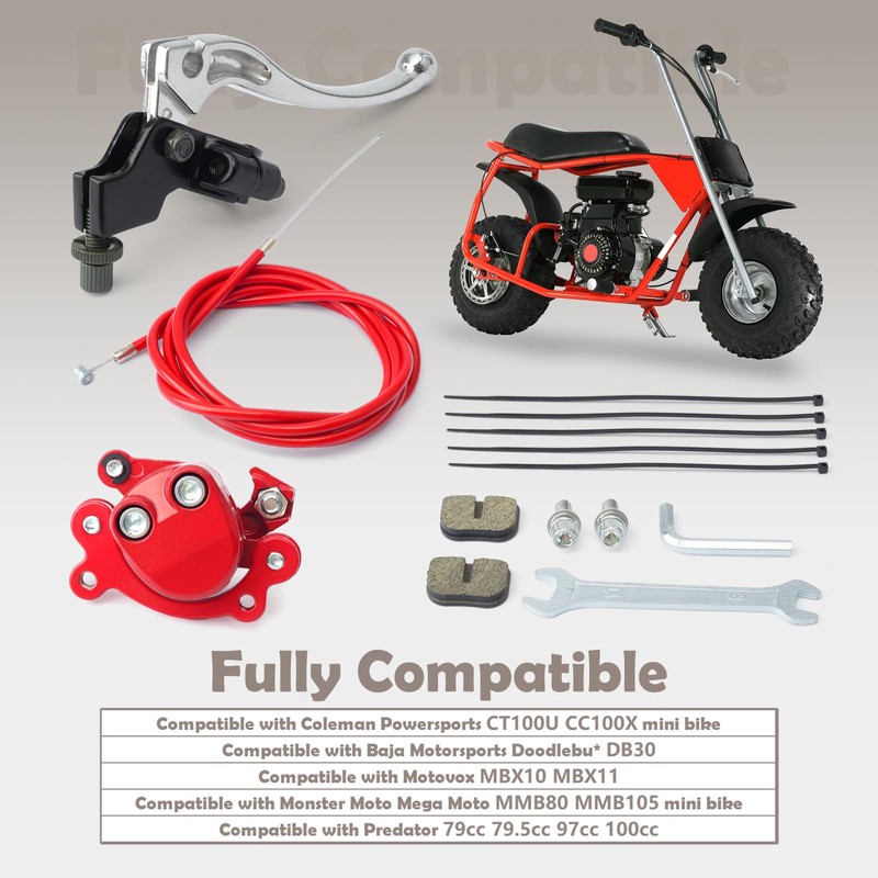 - Compatible Minibike Models: Minibike brake lever kit & brake caliper compatible with Coleman Powersports CT100U CC100X mini bike, compatible with Baja Motorsports Doodlebu* DB30, compatible with Motovox MBX10 MBX11