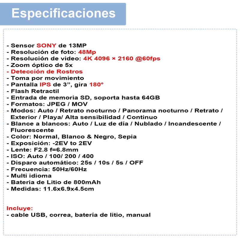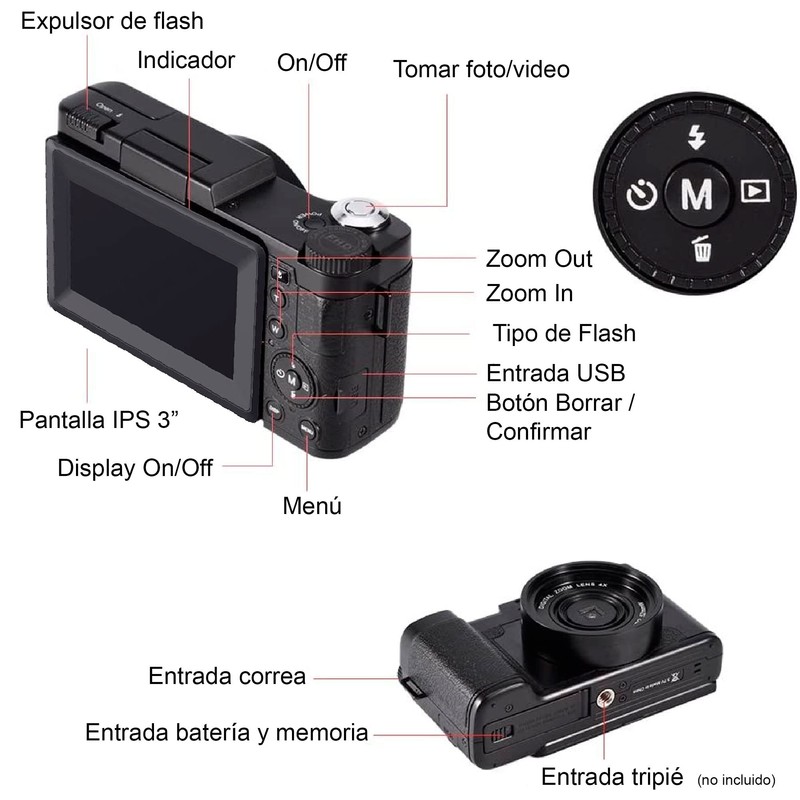 VAK Camara Digital RF 3' LCD 48MP Zoom Optico 4K