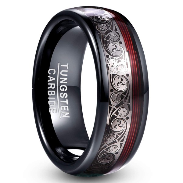 VAKKI 8mm Mens Rings Tungsten Carbide Inlay Celtic Spiral Pattern and Red Guitar String Anniversary Bands Perfect Fit Size W 1/2