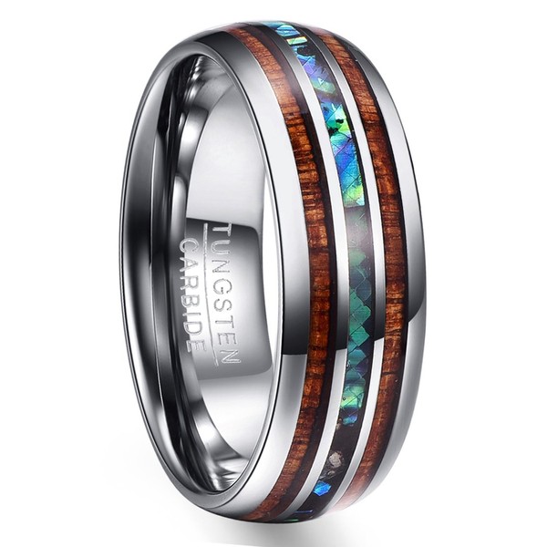 VAKKI Mens Rings with Hawaiian Koa Wood Inlay 8mm Abalone Shell Tungsten Wedding Bands Size Z+4