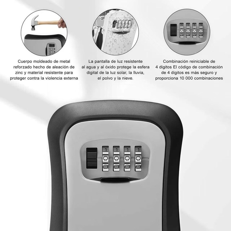 - 【Diseño Resistente al Agua y al óxido】: La caja de llaves montada en la pared es adecuada para una variedad de entornos interiores y exteriores, y puede proteger eficazmente las llaves contra daños incluso en condiciones climáticas húmedas o severas.