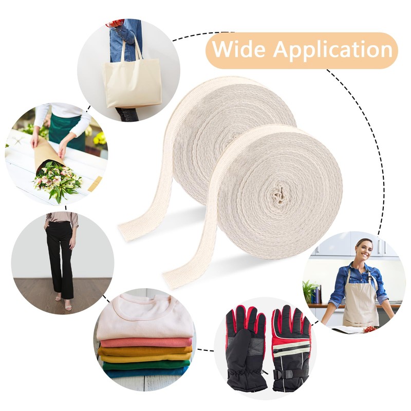 - 2 Rolls Twill Tapes: You will receive 2 rolls of beige cotton tapes, the size is 20 mm/0.8 in in width, 15 m/49.2 ft in length and the total length of 2 rolls is 30 m/98.4 ft, you can cut the length according to your needs