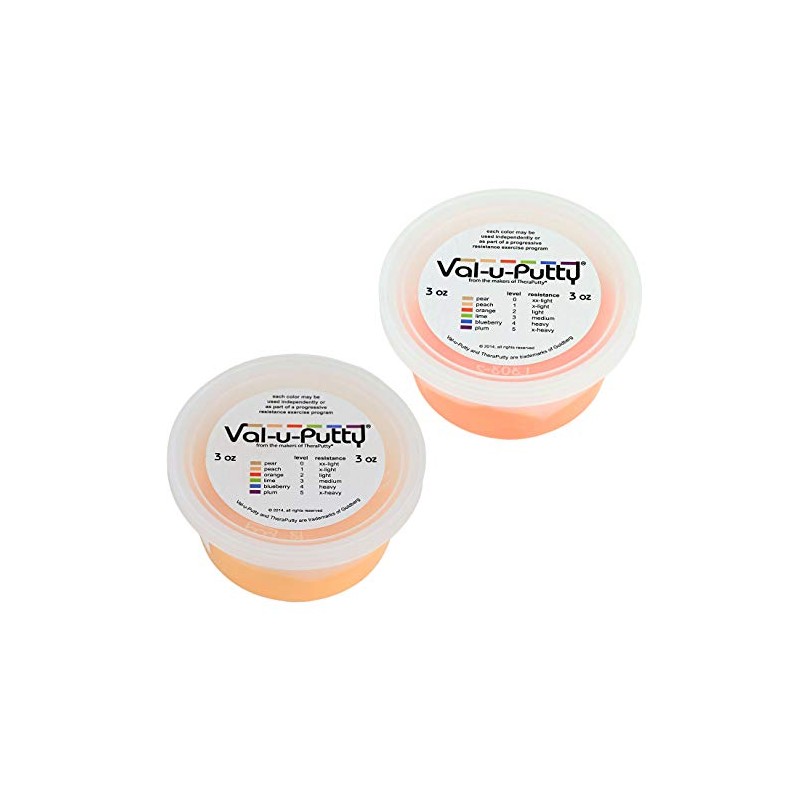 Val-u-Putty has the same great feel as the traditional CanDo Theraputty hand exercise material. Available in 6 resistance levels. Val-u-Putty is available in Berry Colors. Each color-coded putty has a different consistency ranging from xx-light for strengthening the weakest grasp to x-heavy for developing a stronger grip. The putty material is gluten, casein and latex-free. Quantity: 1 Size: 2oz, 3oz, 4oz, 6oz, 1lb or 5lb Color: Pear, Peach, Orange, Lime, Blueberry or Plum **NOTE: Color and resistance correlate Material: Latex-Free