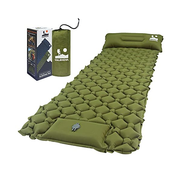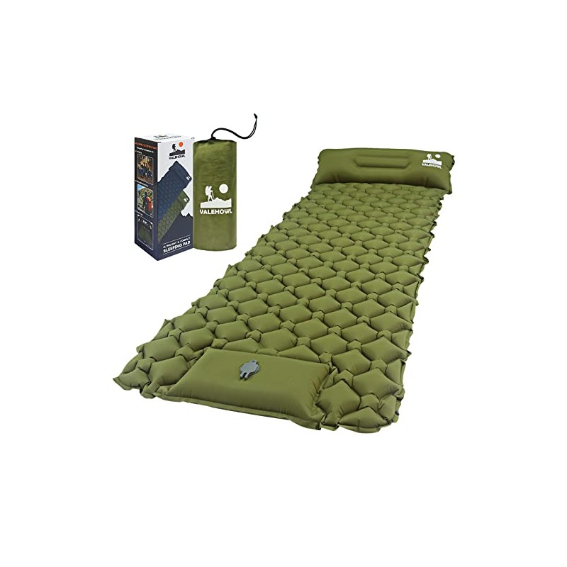 - đă100% Quality Guarantee & Gift IdeasăVALEHOWL Sleeping Pads are carefully inspected before shipping to ensure they are in perfect condition. And our pads are perfectly pampered in the beautiful gift box, along with a detailed user manual & repair kits.It's the perfect gift for friends and family, why not get more and enjoy with them? We are confident that you will love our sleeping mats. If you are not satisfied with this, please contact us directly and we will do our best to help you.