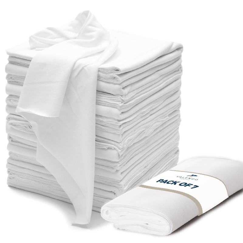 A win for your wallet, your home, and the environment, our cleaning rags for housekeeping are designed to reimagine cleaning routines. With lint free properties, these white rags for cleaning were created to nurture surfaces of all types, whether youre a kitchen scrubber, bathroom de-grimer, or looking for industrial dusting cloths or shop rags lint free for your workplace. The epitome of versatility, our cotton cleaning cloths for house washable are transforming the way we clean, one wipe at a time. From doubling as a shoe polish rag, and general dust rags for dusting or for specific uses such as a lint free cloth for cast iron seasoning and as gun cleaning cloths. And for the artisans, injecting your space with a creative flair as paint rags ,staining rags lint free cloth for staining wood and lint free painters rags. We set out to create your new favorite wiping sidekick. No wear and tear. No slacking absorbency. Just industry-disrupting cleanin rags, at your fingertips. Care: We recommend washing the cotton cloth rags in cold water and tumble drying on low heat or hanging them to dry. Please dont use fabric softener, dryer sheets or bleach. Chemicals will only reduce the softness of the material. With all natural materials and free from synthetic and harmful chemicals, these soft cleaning rags cotton are safe for you, your house and your family. VALENGO, THE FUTURE OF WIPING, AT YOUR FINGERTIPS.