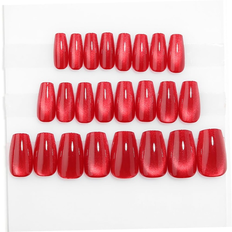 Valentine Press on Nails Square, True Red Cat Eye Press on Nails, Fashion Gel Fake Nails, Reusable Acrylic Fake Nails, Glossy Stick on Nails for Women Girls Gift, Glue on Nails Kit 24 Pcs, Ruby Flash