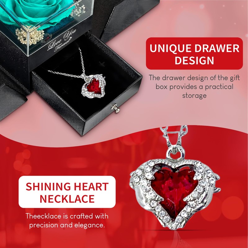 - VALENTINE’S DAY GIFT FOR HER: An everlasting rose symbolizes eternal beauty and love. This preserved roses and necklace set is the perfect way to show her that your love, like the rose, will last forever