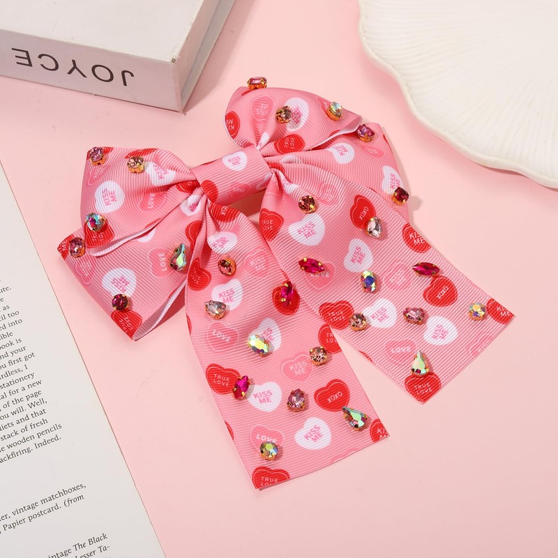 - ღ Conversation Heart Hair Bows: It's time for love! Feel it, spread it, wear it with our beautiful jeweled heart hair bow clips. Tell it like it is with conversation hearts which is a symbol of never-ending love! Pair the XOXO hair bow your favorite cocktail dress to complete your Valentine’s Day outfits or with your everyday casual for effortless date night style. This Valentine's Day, surprise your loved one and let her fall in love all over again with our romantic LOVE heart hair ribbons