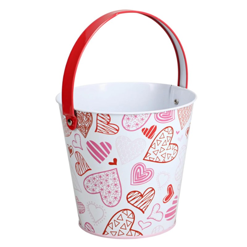- Set of 3 Valentine's Day Hearts Metal Tin Bucket Pails with Handles