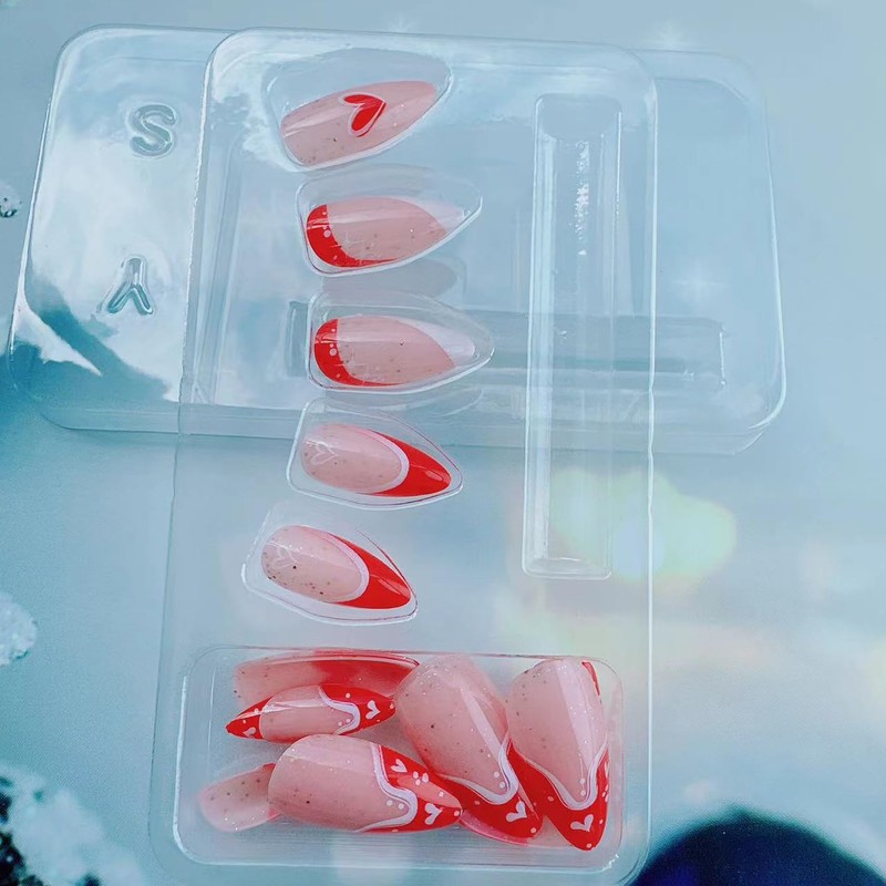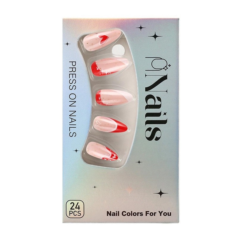 -24pcs/box Valentines press on nails. -24pcs nail double-side stickers. -1pcs mini nail file. -1pcs wooden stick. 💕 How to use: 1.File and clean your natural nail before applying.