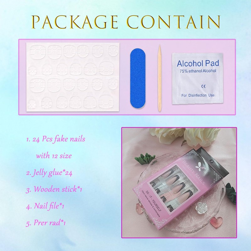 - Lasting Effect: You can use the nail glue sticker we gave you (using nail glue sticker, fake nails can be reused). However, If you want the false nails press ons to last longer, you can use liquid nail glue for a lasting effect of 1-2 weeks.
