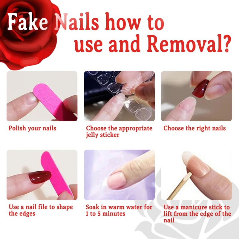 - 【Easy to use】After trimming and cleaning your natural nails, select the right sizes of our high quality nails and apply our nail adhesive tape on, then press on your nails for 20 seconds. Now you have beautiful Valentine's Day false nails.