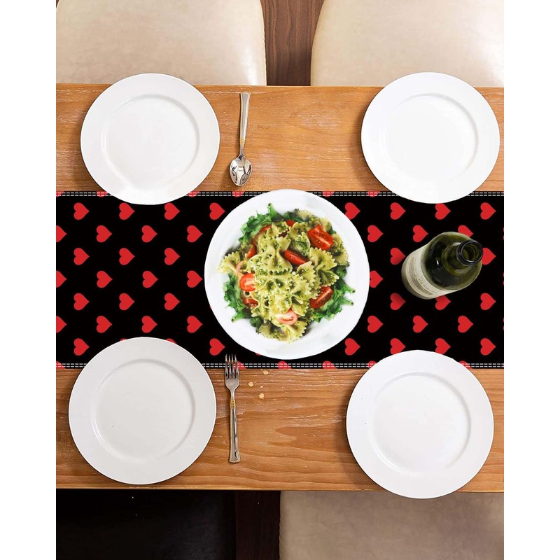 Valentine's Heart Velvet Fabric Table Runner, Happy Love Lover Valentines Day Tablecolth for Dining Home Decor