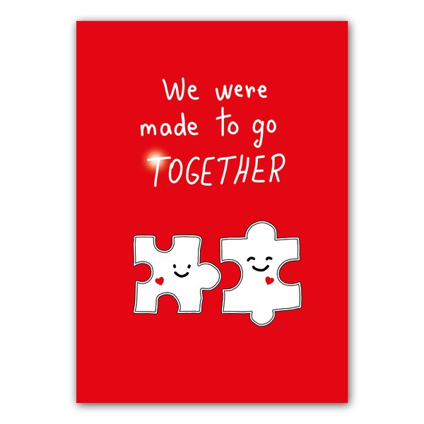 Valentines Card. Puzzle Piece Design. Eco-friendly. 4pp A5 size. Valentine's Card with Red Envelope. Verse inside. Printed and Packed in UK.