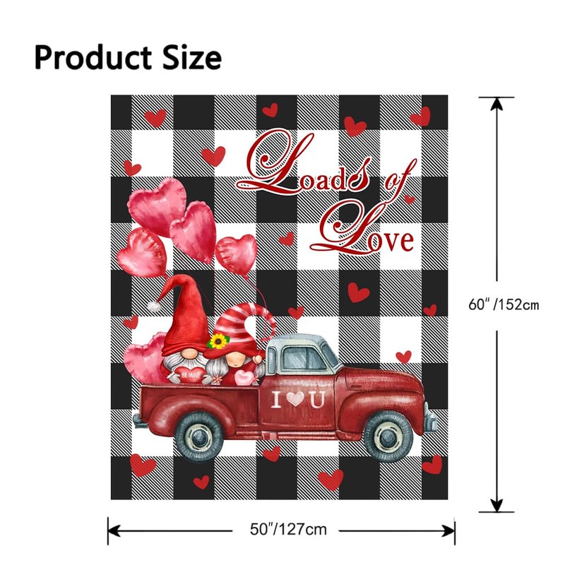 Valentines Day Decorative Throw Blanket Black and White Plaid red Truck Blanket Wedding Anniversary Blanket for Couch Sofa Bed Soft Lightweight Fuzzy Plush Fleece Couples Blanket and Throws 50x60