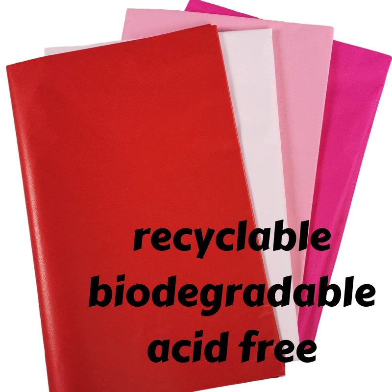 • Acid-Free Tissue Paper - This Valentine's Day wrapping paper is acid-free, and is great for archival work. Such as for storing photographs, wrapping clothing and lining storage boxes. Our tissue is also 100% recyclable and 100% biodegradable.
