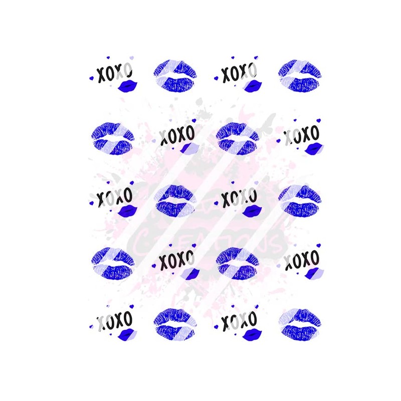 Valentines Day - XOXO Hearts Lips Love Nail Art Decals- Waterslide Nail Decals - Design #4 Blue