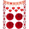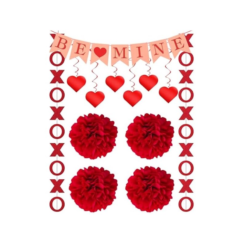 Valentines Decorations Set, Handmade Paper Heart Swirls XO Garlands BE Mine Banner, Red, Irregularly Shaped, Paper, Decoration, Garland, Banner