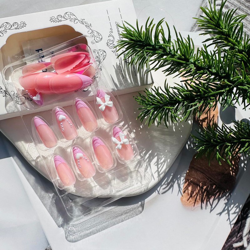 - 【Package Contains】This bow press on nails with designs comes in a beautiful package that includes, 24pcs nail adhesive tabs, 1pc nail file, 1 alcohol cotton and 1pc wooden stick.