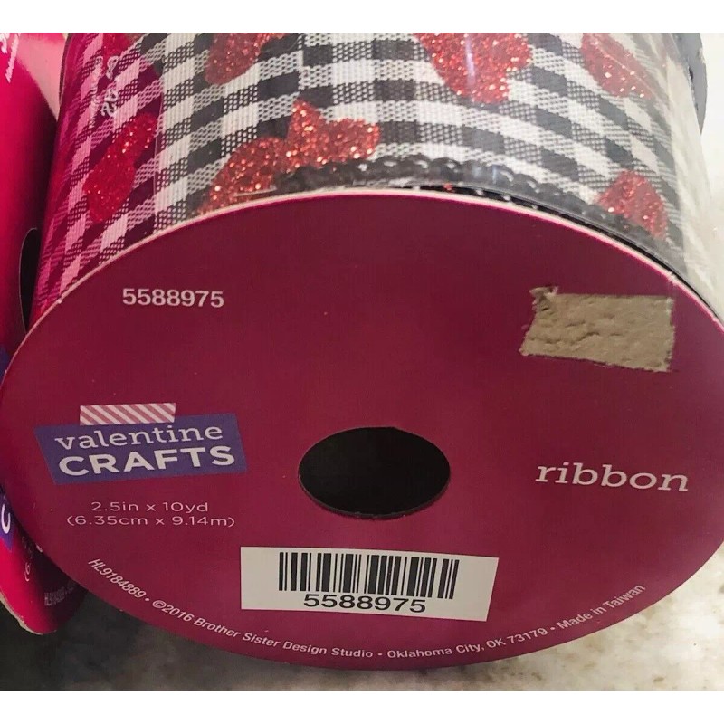 Valentine’s Crafts Red Hearts On White Satin Ribbon:2.5"x10yd(1 Roll).
