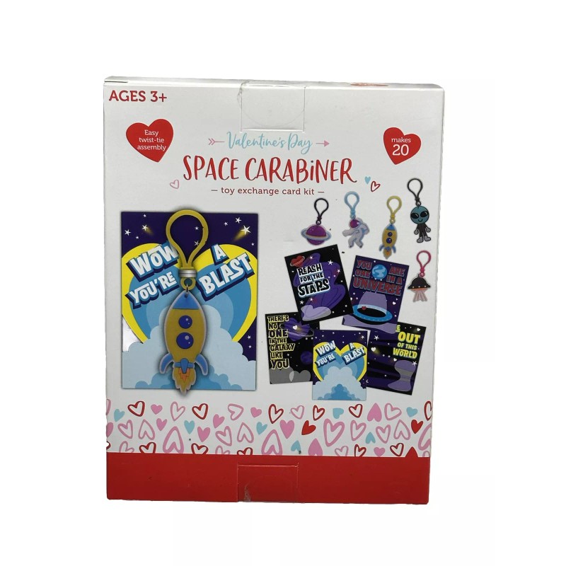 Valentines Valentine’s Day 3+ Space Carabiner Makes 20/3+/ Toy Exch. Card kit.