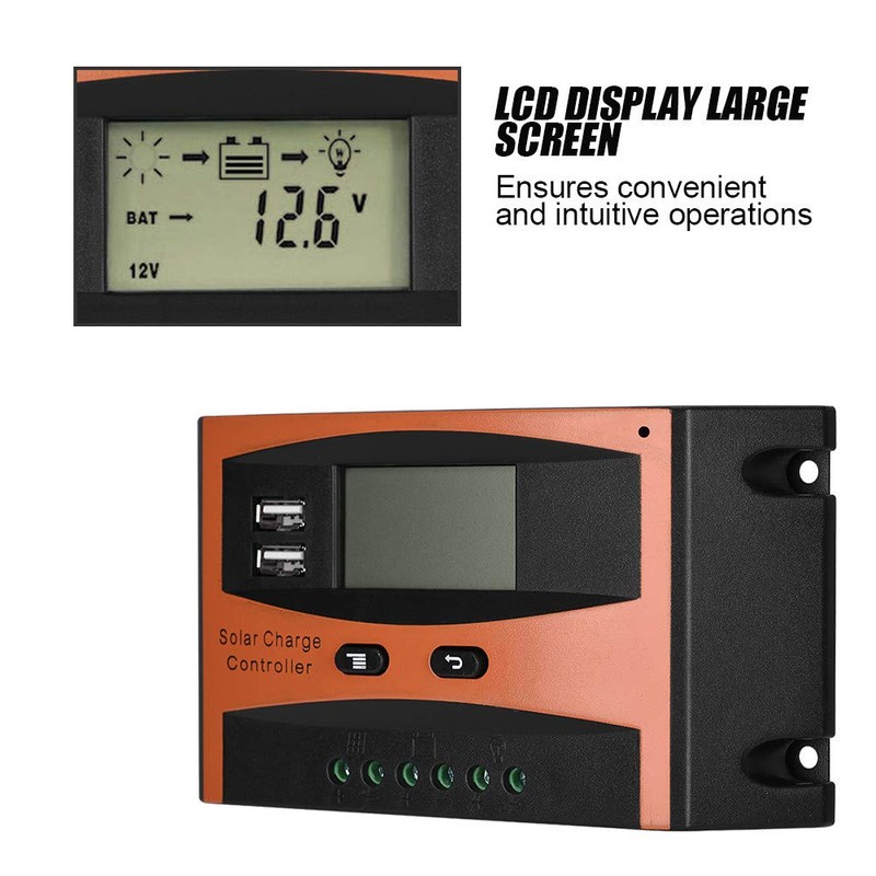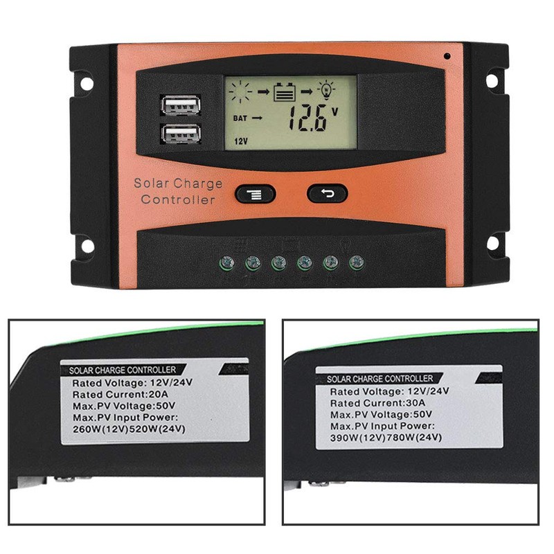 ValentSolar Charge Controller, IP32 Waterproof LCOutput Smart PWM Solar Panel Charger Controller 30A 50V (30A)