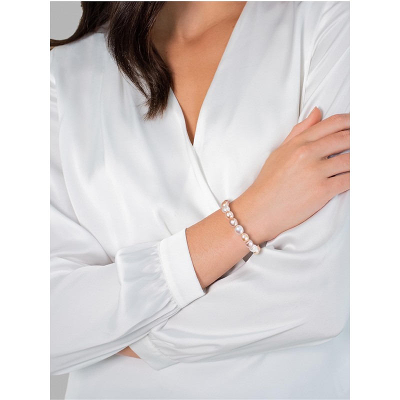 Valero Pearls Women's Pearl Bracelet with Baroque Freshwater Cultured Pearls 8.5 - 9.5 mm Multicoloured - Flexible/Without Clasp, Beads