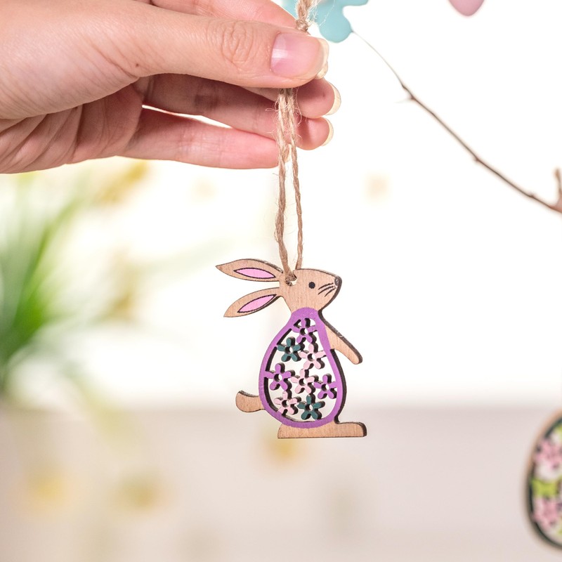 - 【Kreatives Design】 Diese hölzernen Anhänger Ornamente sind Gläsern Hasen, Ostereiern, Blumen und Schmetterling, perfekt für das Feiern von Ostern entworfen.