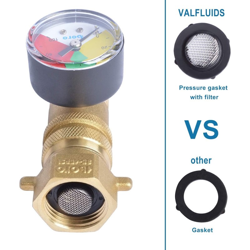 VALFLUIDS RV Water Pressure Regulation,3/4" Garden Hose Thread, for RV Camper, Hose, Trailer, Setting 35-45 Psi (with Gauge)