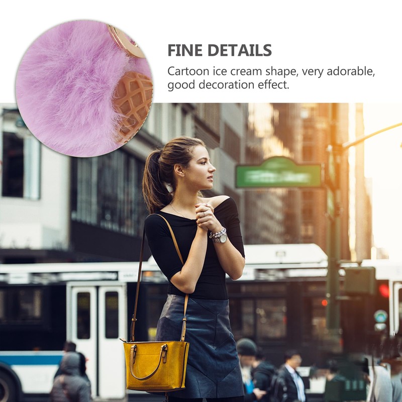 VALICLUD Pack of 3 ice cream key rings, plush charm pendant with key ring, pom pom ball, ice cream cone key chain, key holder, Style 2