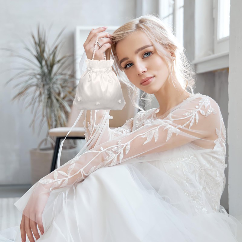 1 * White Bridal Bridesmaid Satin Decorated Dolly Bag Handbag ( Pearl)