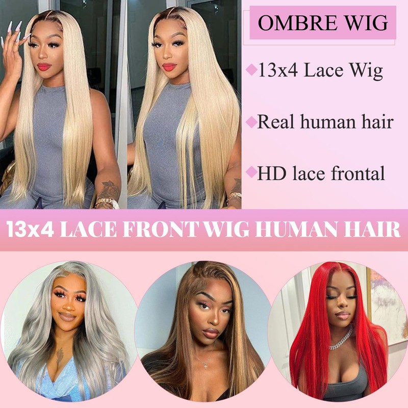 - ღQualityღ Straight Lace Front Wigs Human Hair. 180% Density. Ombre Blonde Wig Human Hair Pre Plucked Natural Hairline. Soft&Durable with Invisible Bleached Knots Match All Skin Color Well. Looking Forward to Your New Look:)