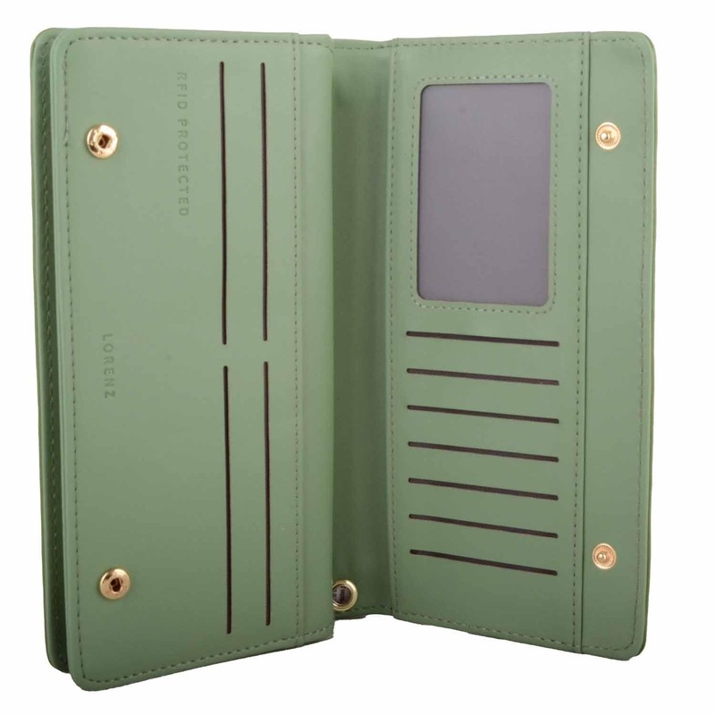 Valita Womens Large Smooth PU Leather RFID Clutch Purse with Detachable Wrist Strap - Green