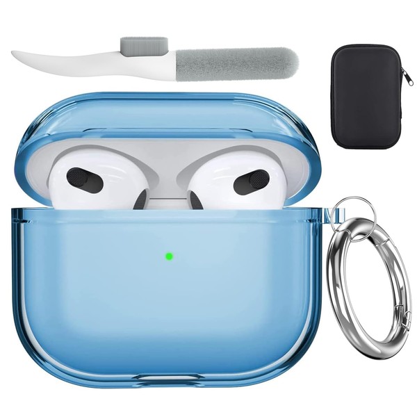 Valkit Compatible AirPods 3rd Generation Case Cover Clear, Shockproof Airpod 3 Case 2021 with Keychain for Women Men Girls Soft TPU Protective Skin Cover for AirPods Case 3 Gen - Clear Blue