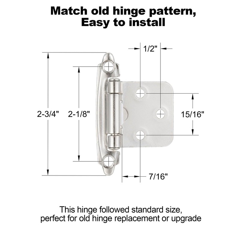 • Easy to Install: Match your old hinge pattern. Perfect for old hinges replacement. Screws were included.