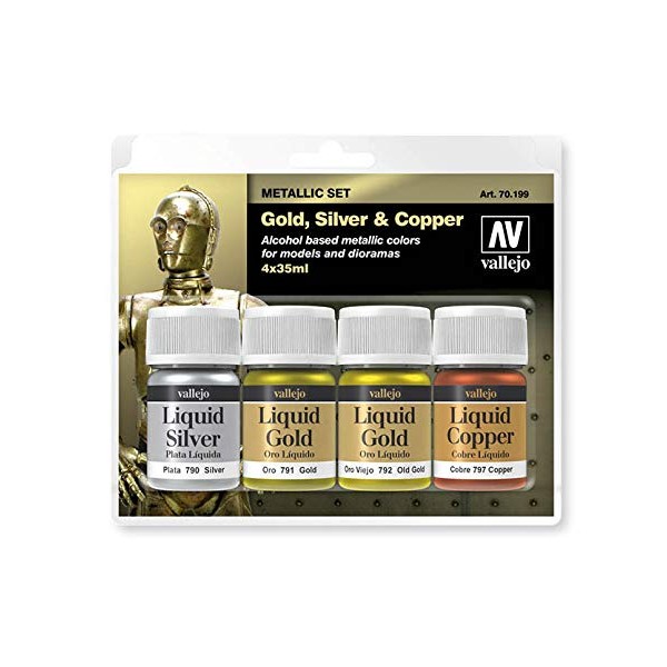 - Vallejo Metallic Set 70199 Gold, Silver & Copper (4 x 35 ml)
