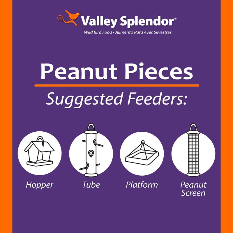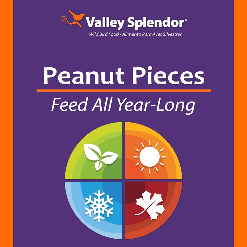 - Valley Splendor peanut pieces are a favorite choice of Woodpeckers, Chickadees, and Cardinals