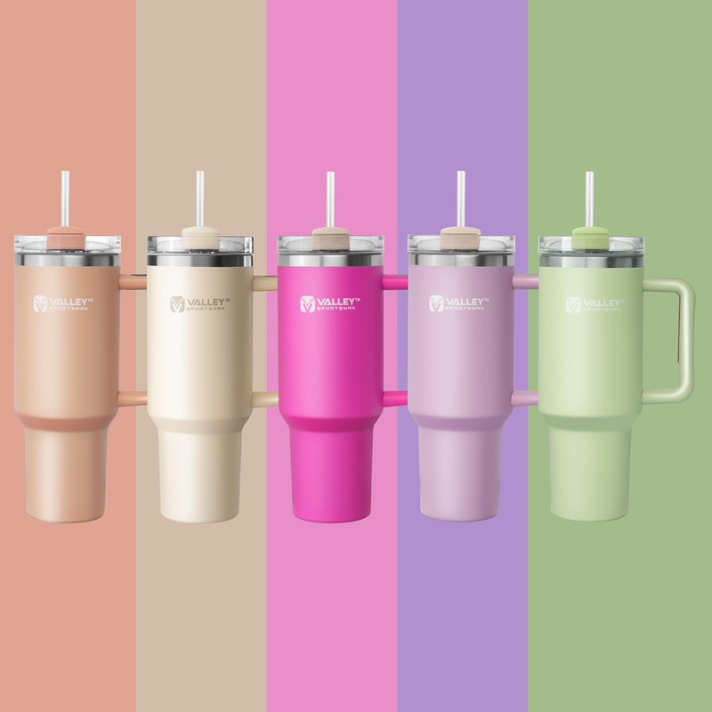 Valley Sportsman 40 oz Stainless Steel Tumblers with Handle, Spill-proof Lid and Straw, Double-Walled Insulated, BPA-Free, Perfect for Hot and Cold Drinks, Rose Quartz