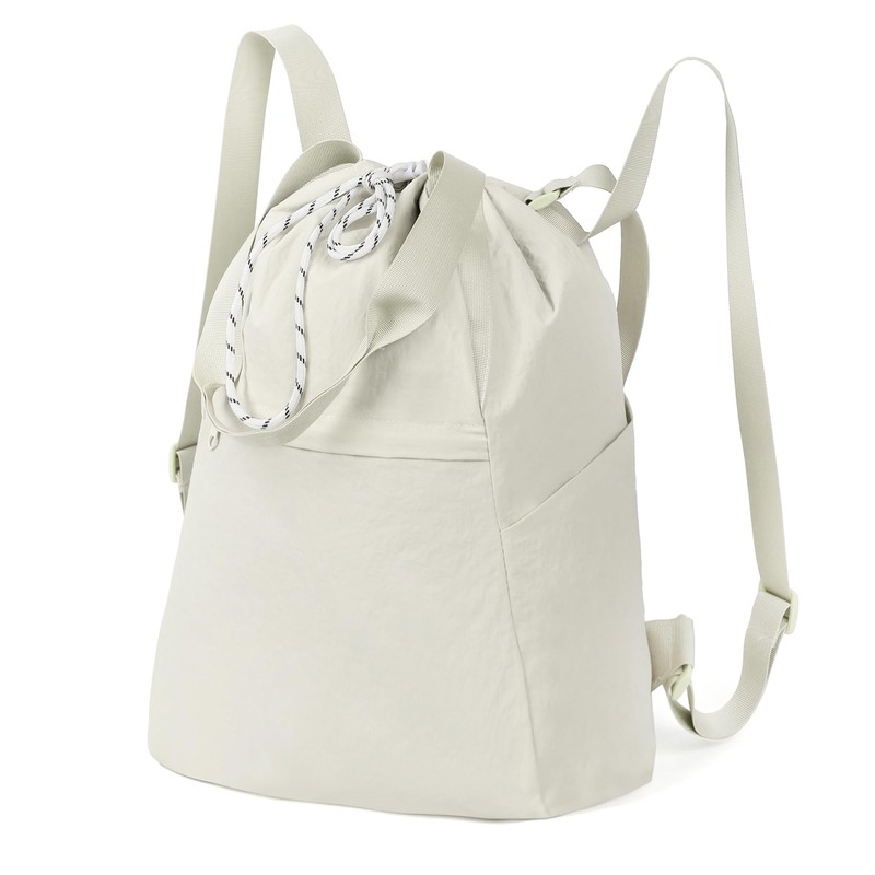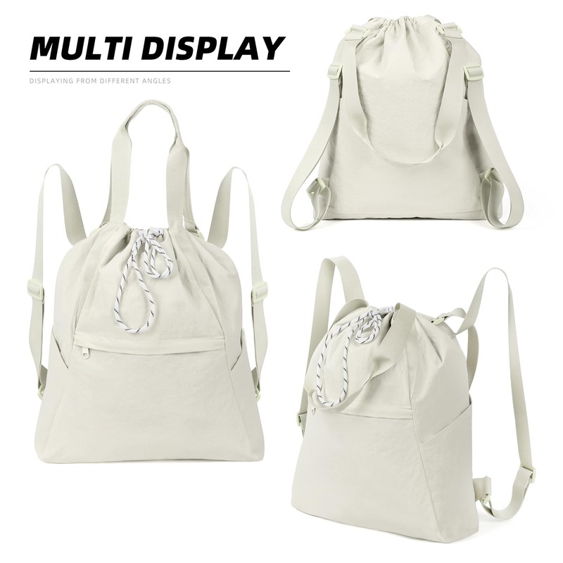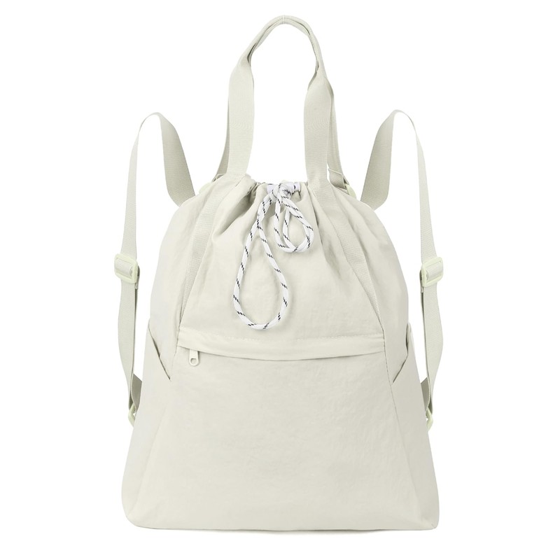 Valleycomfy Drawstring Backpack with Wet Pocket,Waterproof Drawstring Bag,Gym Backpack for Beach,Pool,Swim and Travel,Beige